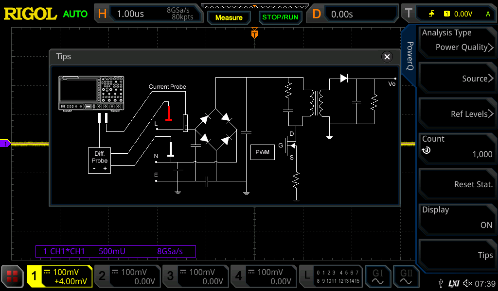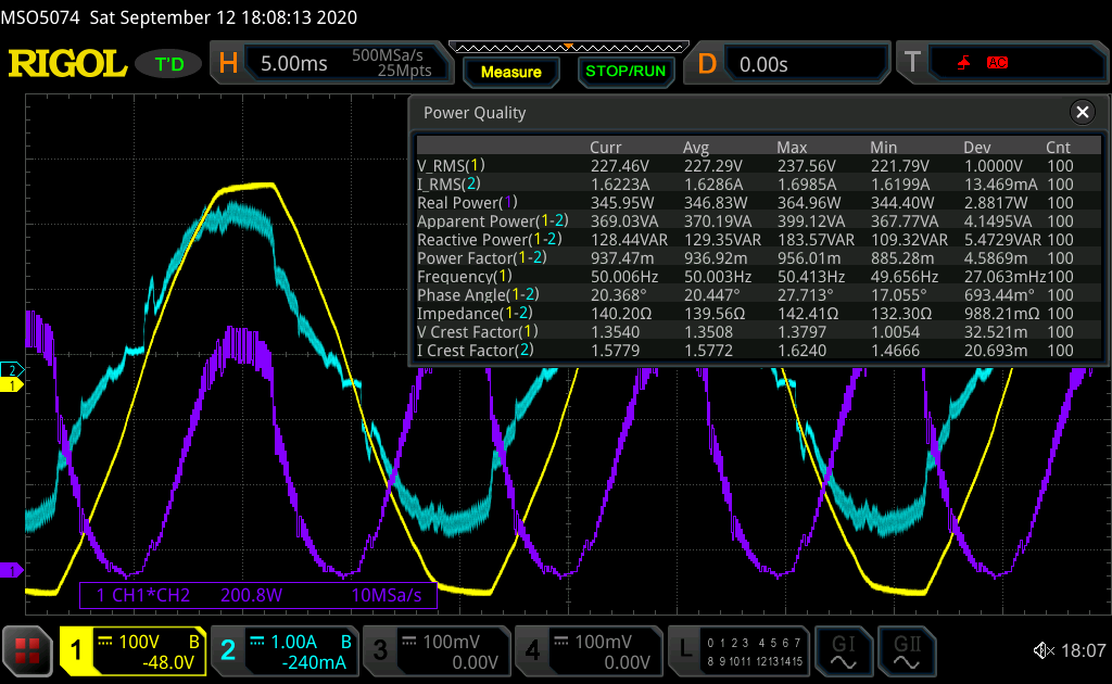 Das Rigol hat eine sogenante Power-Analyse Funktion. Damit kann man die automatisiert Messen lassen was ein Verbraucher auf der Netzseite macht.